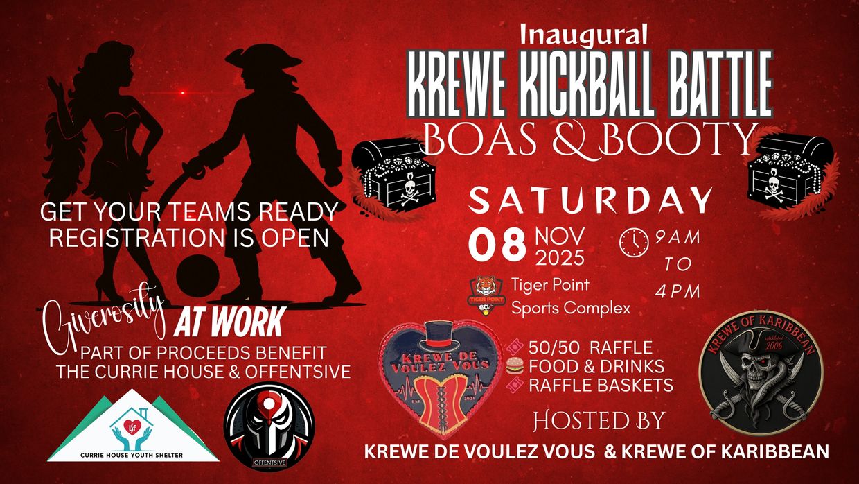 #InauguralKreweKickballBattle #BoasAndBooty #KreweDeVoulezVous #KreweOfKaribbean #VoulezVousVibes #PirateVibes #BurlesqueAndPirates #GulfCoastKrewes #SassAndSwagger #KreweLife #KreweFam #KreweShip #PensacolaMardiGras #kickball #GiverosityInAction #thecurriehouse #OffentsiveCorp