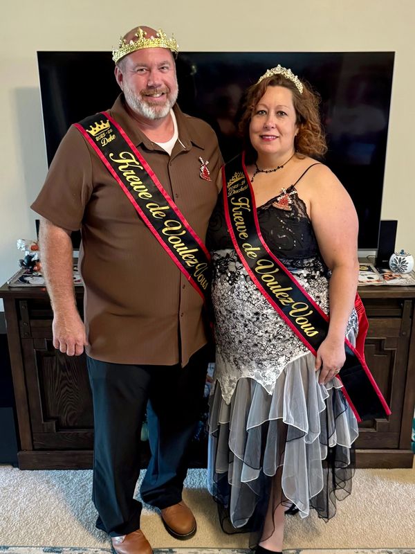 Every royal court needs its glittering gems—and ours shine bright in the form of Duke Ryun M. and Duchess Colleen Vargas, the dynamic duo bringing equal parts style, spirit, and spicy good energy to the Krewe de Voulez Vous crown..